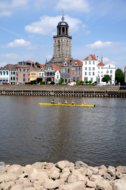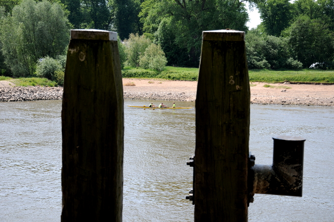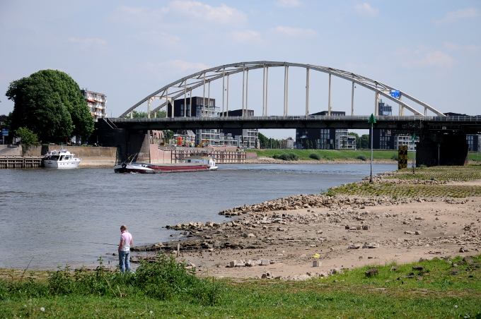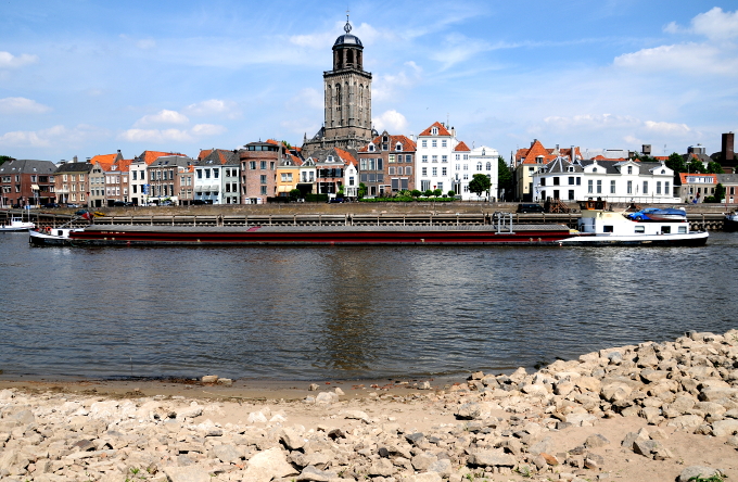 11.05.2011 | Deventer Een schip vaart over de IJssel bij Deventer. Door de lage waterstand mogen schepen elkaar in een aantal bochten van de IJssel niet inlopen (inhalen) of ontmoeten (tegenkomen). De veerpont bij Deventer heeft geen last van de lage waterstand.