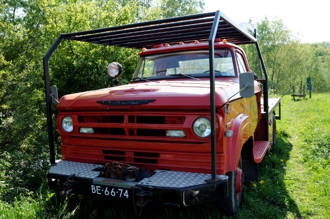 Dit is een (voormalige) brandweerauto van het merk MOWAG gebouwd in de jaren ’70. Het Zwitserse bedrijf is in 2003 opgegaan in een grote wapenproducent en maakt legervoertuigen.