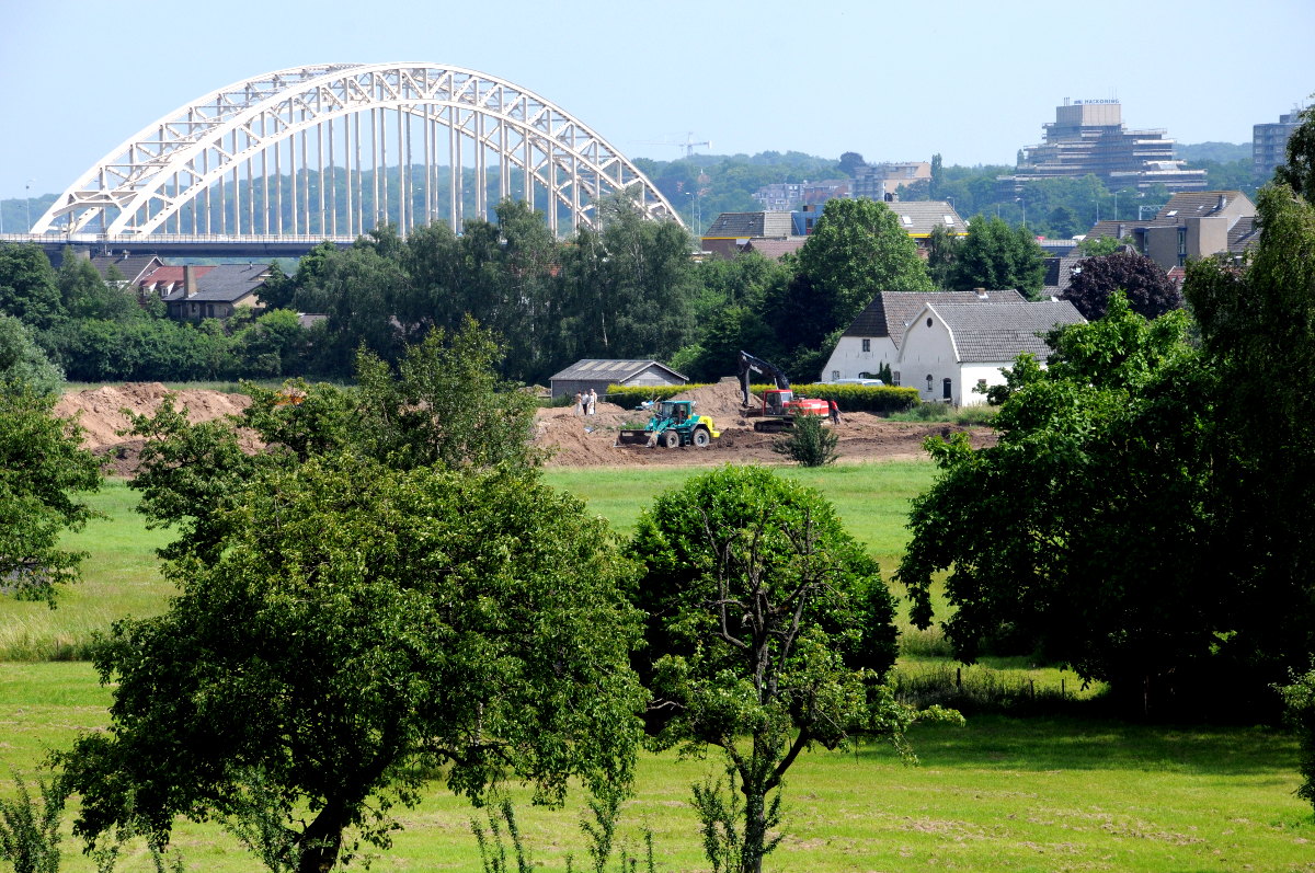 27.09.2011 | Nijmegen In Nijmegen/Lent worden de komende tijd ca. 60 huizen en kassen gesloopt als voorbereiding op de dijkteruglegging en waalbochtafsnijding die gaat plaatsvinden. De teruglegging van de dijk wordt door Rijkswaterstaat uitgevoerd in het kader van het landelijke project ‘Ruimte voor de rivier’ en betekent voor Nijmegen dat een bocht in de Waal wordt afgesneden en er een 300 meter brede nevengeul naast de Waal ontstaat. Bij extreem hoge waterstanden zoals die van 1993 en 1995 zal de afwatering van de Waal hierdoor beter verlopen. In de huidige situatie heeft de Waal bij Nijmegen een flessenhals die opstuwing van het water veroorzaakt.