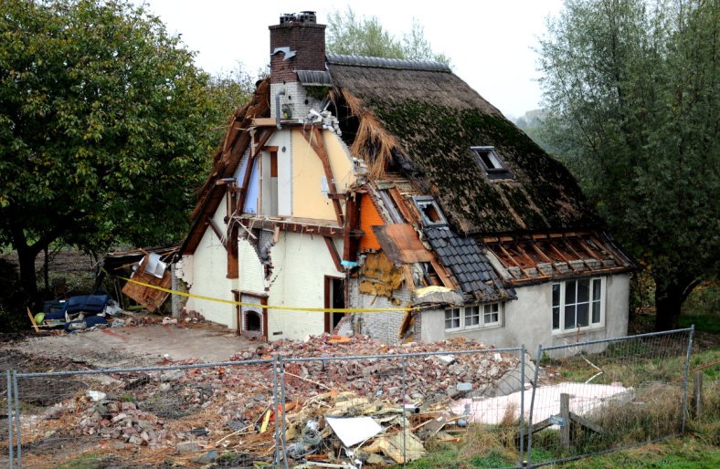 Op 7 foto’s hieronder een aantal huizen die gesloopt worden (Griftdijk Zuid, Lent).