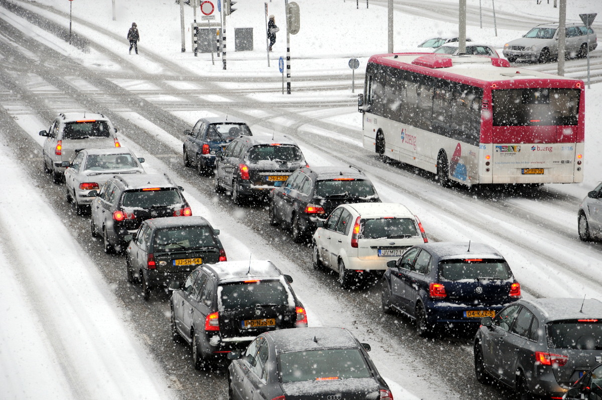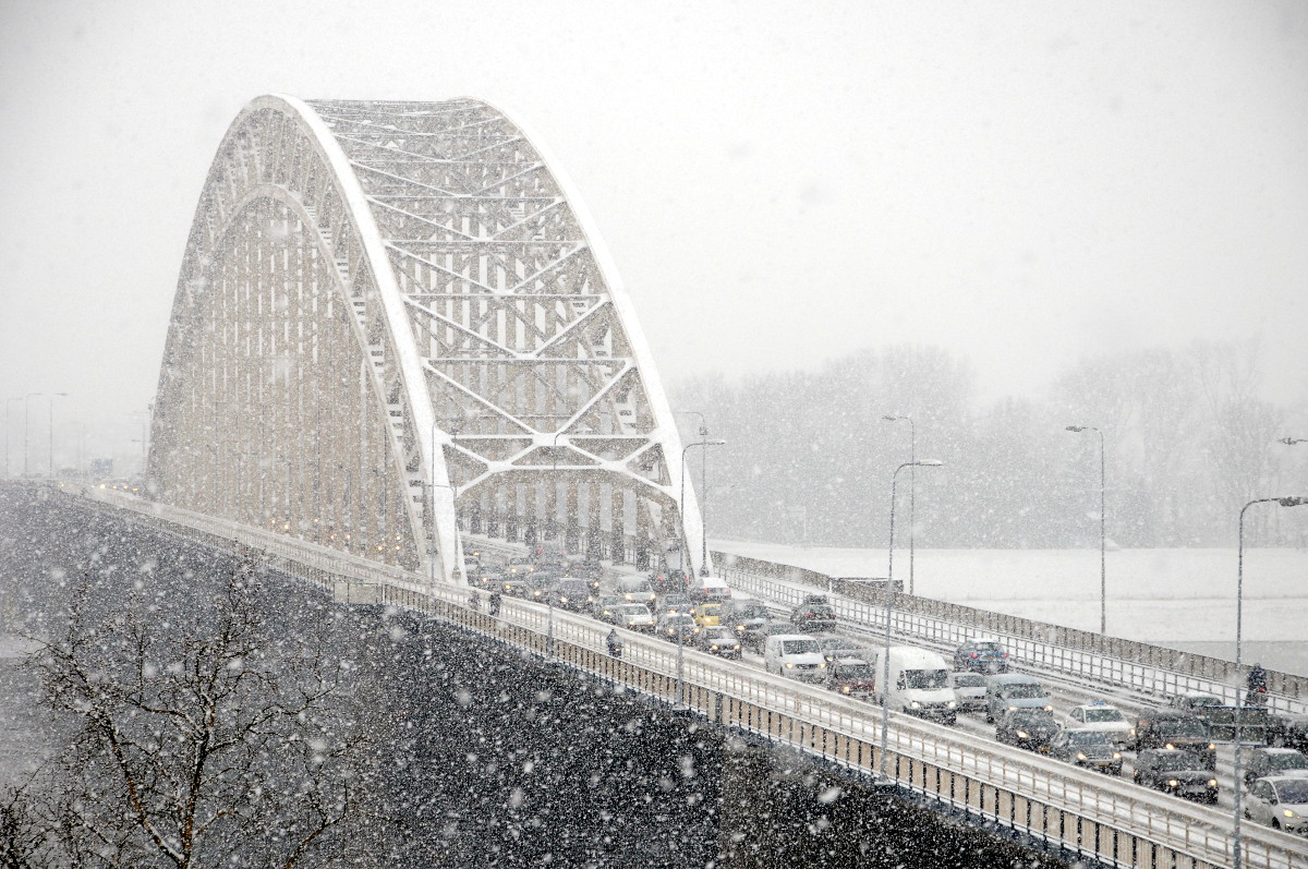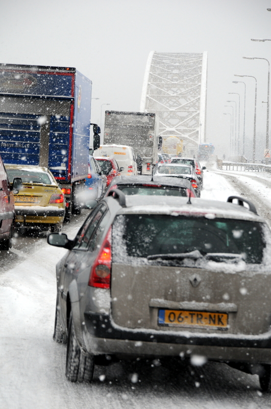 03.02.2012 | Nijmegen De overvloedige sneeuwval heeft gezorgd voor files in Nijmegen voor de Waalbrug. Om 16.00 uur stond het verkeer vast. Sneeuwschuivers in diverse soorten rijden door de stad.