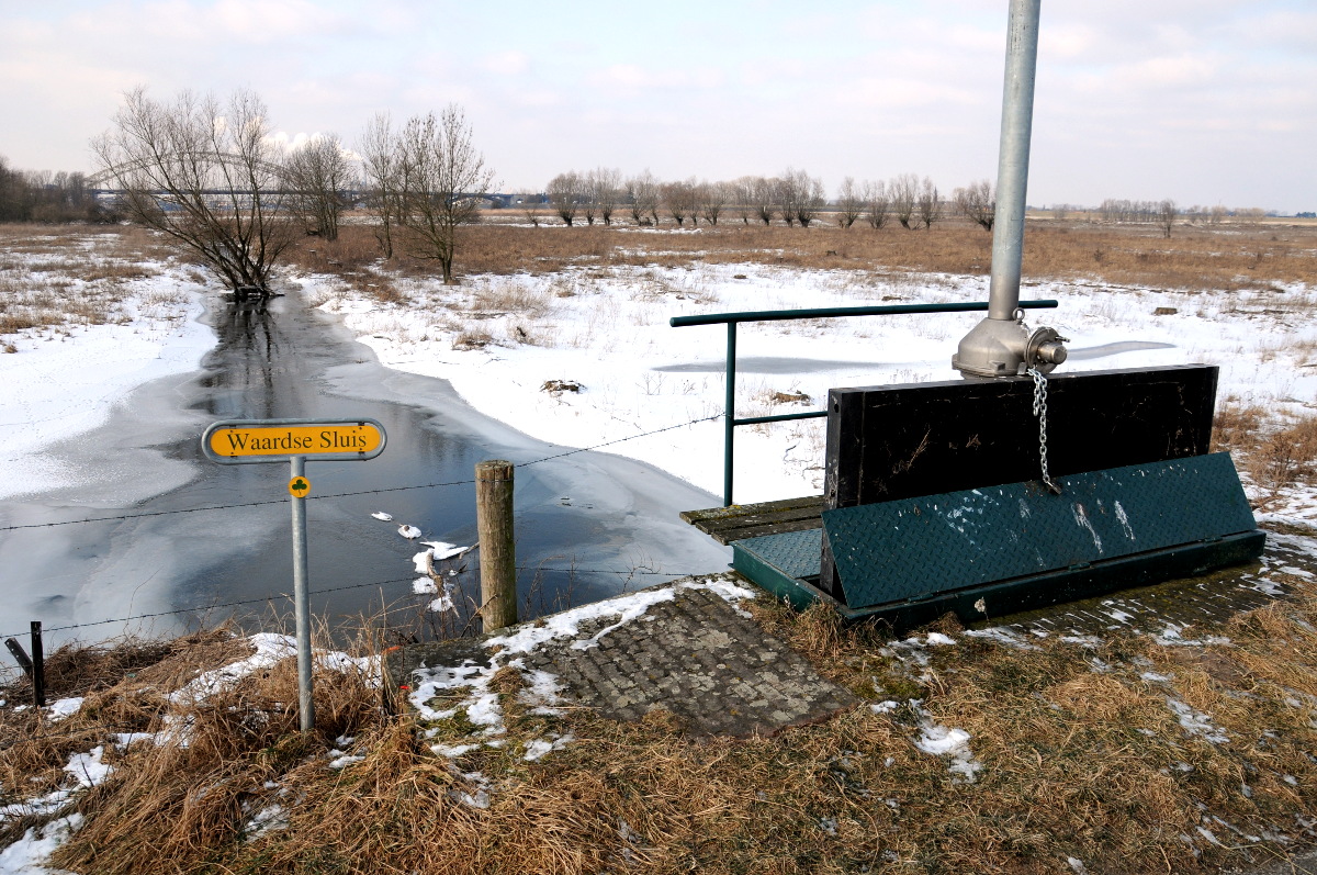 De Waardse Sluis is een kleine sluis die de doorgang is tussen de uiterwaarden van de Waal en de Oude Waal. De Oude Waal is, zoals de naam al aangeeft, een afgesneden stuk van de Waal. Bij hoog water loopt water van de Waal de Oude Waal binnen en bij laag water er uit. Als er water uit loopt kan het ijs gaan zweven.