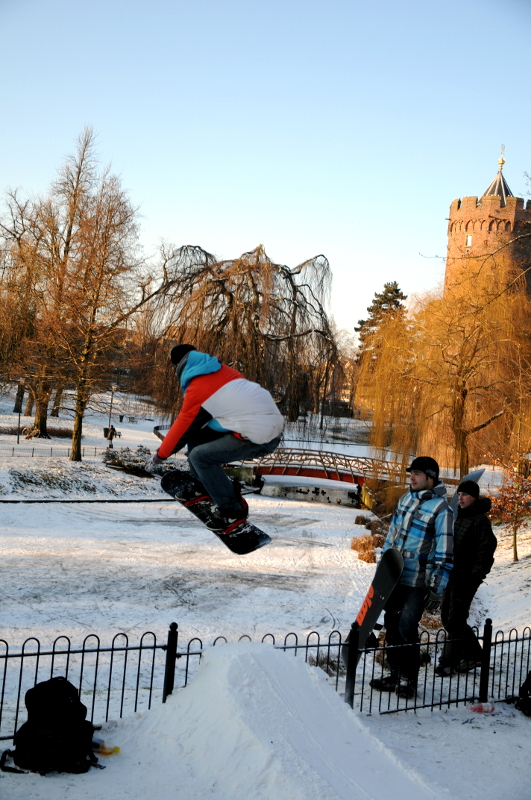Snowboarden in het Kronenburgerpark.