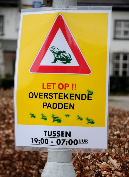 Bij Beek (zuidwest van de Ooijpolder) wordt gewaarschuwd voor overstekende padden.