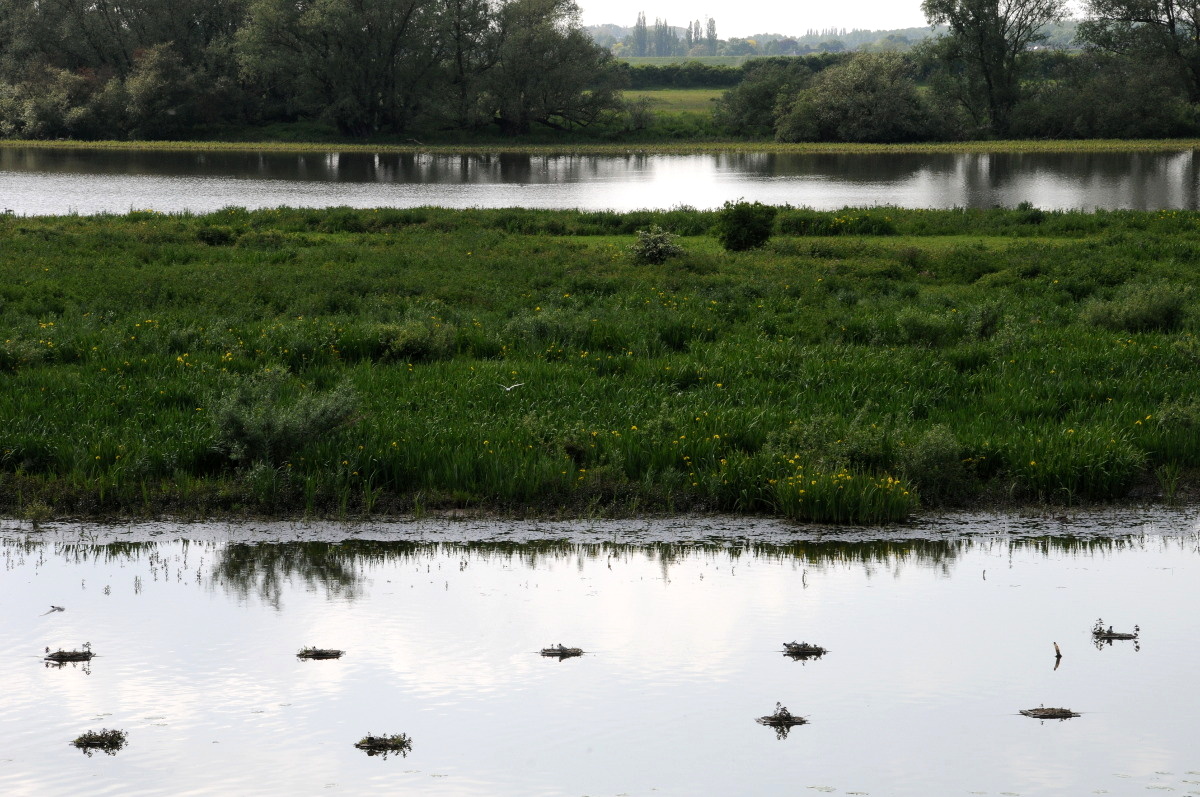 De Oude Waal, een oude tak van de rivier de Waal die bij hoog water van de Waal volstroomt. Op de voorgrond aangelegde broedeilandjes voor de Zwarte Stern.
