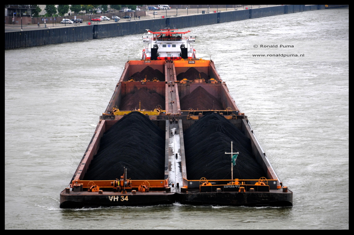 Iedere dag passeren meerdere duwbakken met kolen Nijmegen over de Waal. De kolen komt meestal uit Zuid-Amerika of Zuid-Afrika en wordt naar Rotterdam vervoerd. Daar wordt de kolen in kleinere schepen of duwbakken geladen. Deze varen naar Duitsland om verstookt te worden in elektriciteitscentrales.