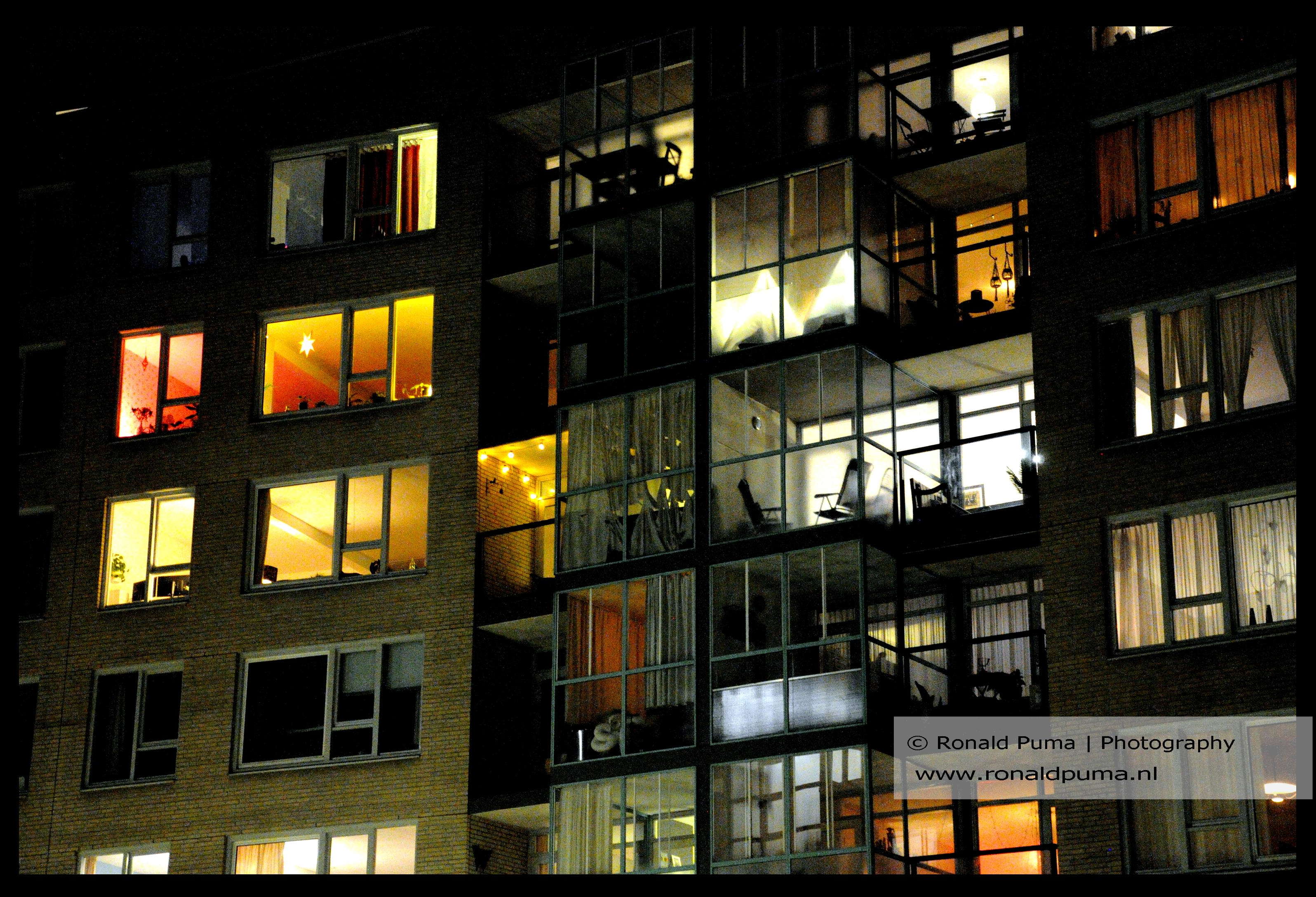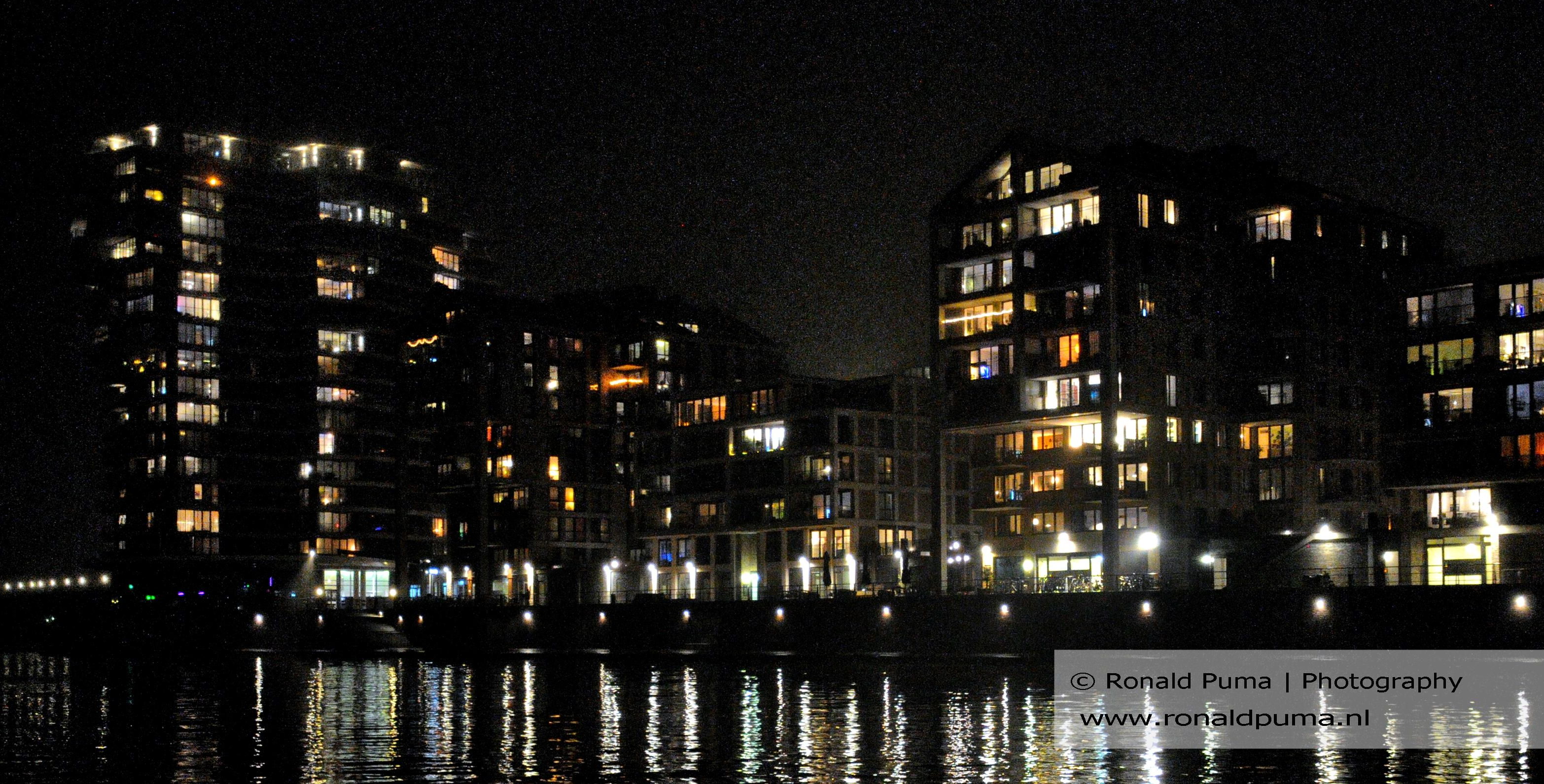 De avondklok zorgt ervoor dat mensen binnen moeten blijven. Op de foto’s flats langs de binnenhaven van Nijmegen.