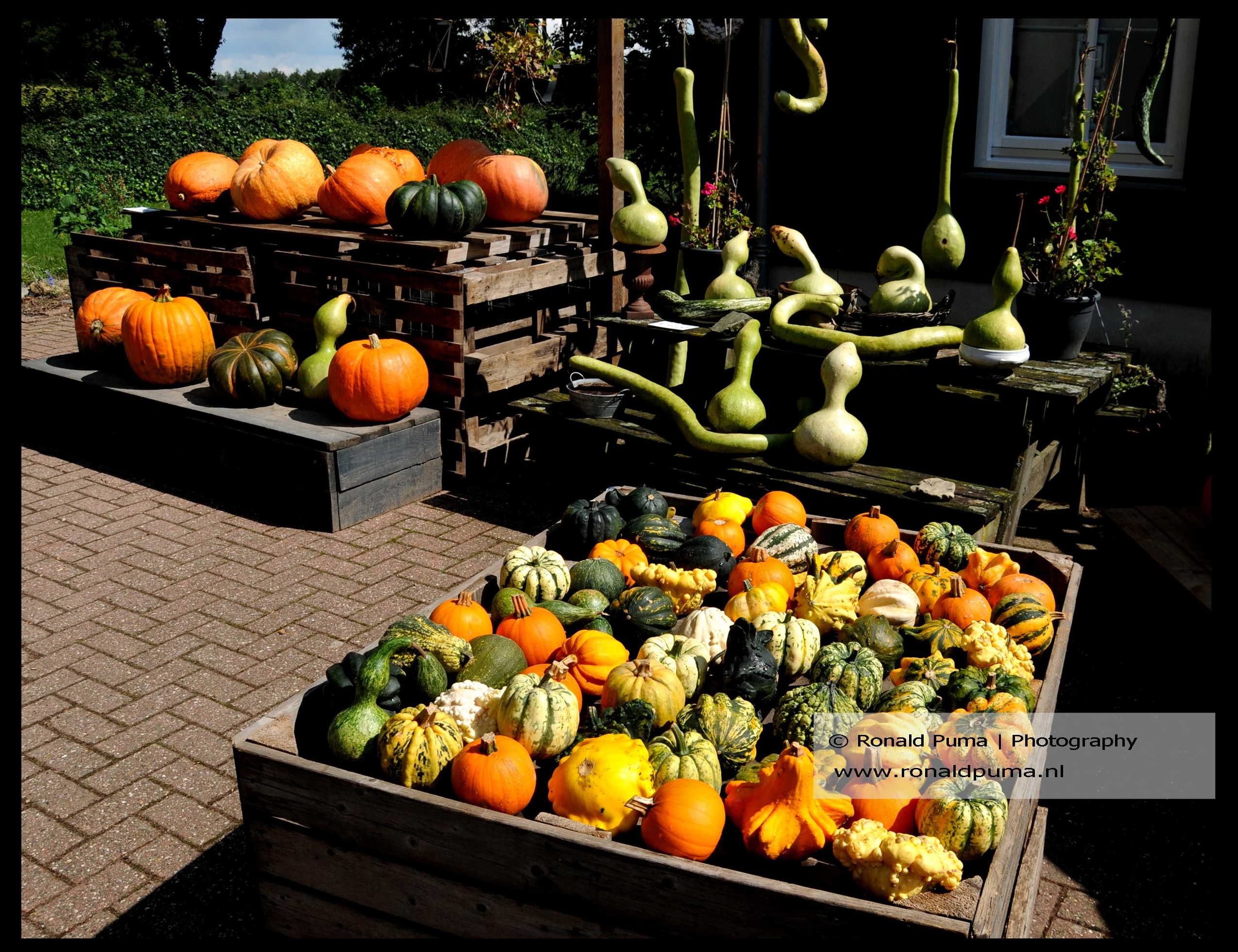 Augustus 2023 Een pompoenkwekerij bij Groesbeek (ten zuiden van Nijmegen) (Groentenhof Poelen) heeft een goede oogst die mooi is uitgestald voor de verkoop. Een fotogeniek tafereel.