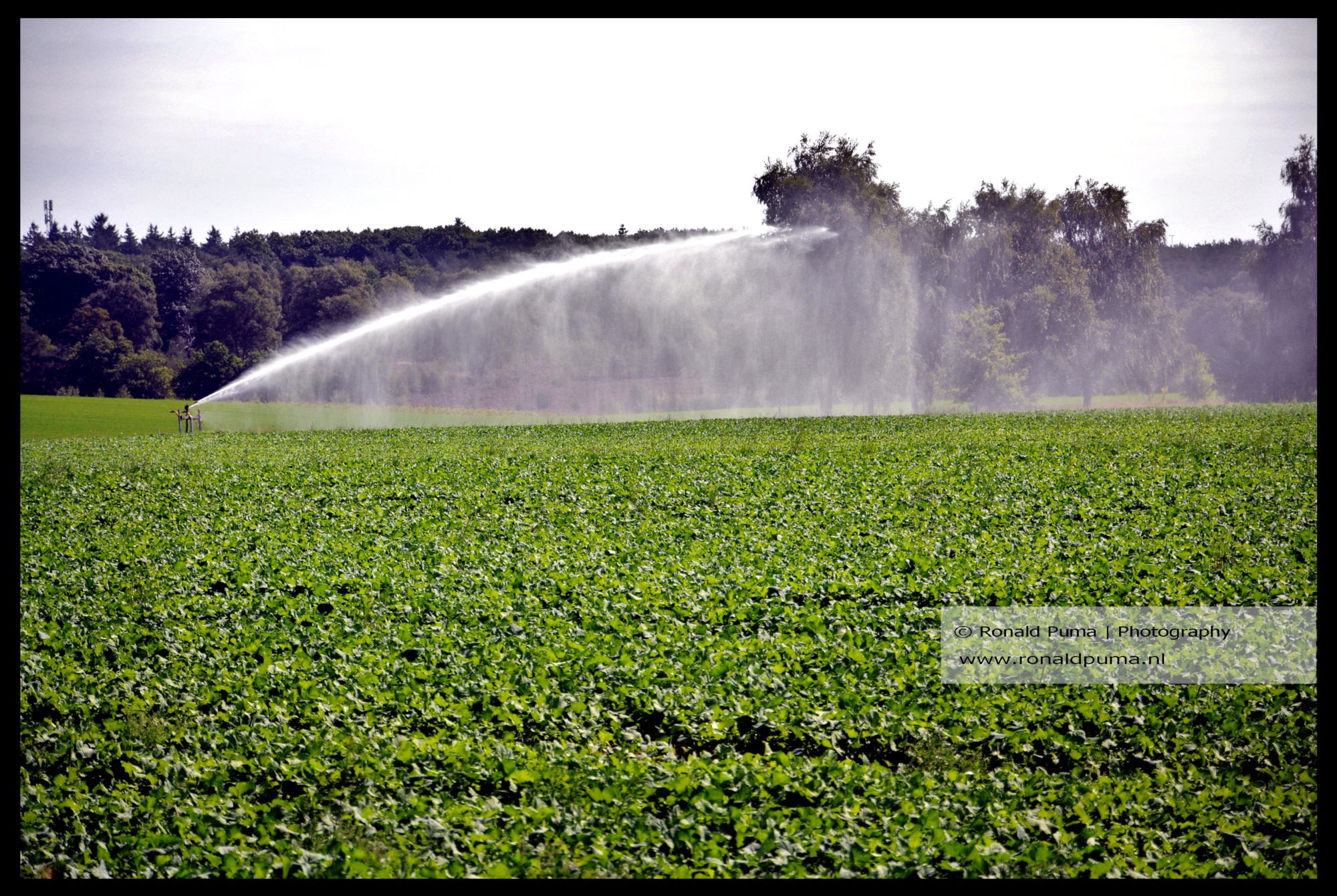 Update 21.08.2025. Laag water Waal. Beregening van een veld nabij Wolfheze (Gelderland).